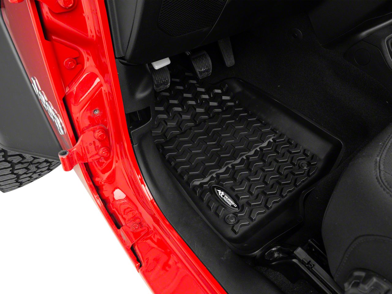 Simply remove the old floor mats and slide the rugged ridge floor liner into.