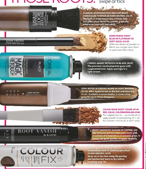 Root vanish colouring brushes 20g 30 00 are available in 5 colours.